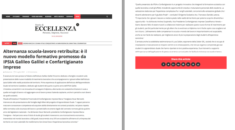 L’appuntamento rientra nelle azioni che l’IPSIA Galileo Galilei sta promuovendo in collaborazione con Confartigianato Imprese per accompagnare la presenza di studenti nelle realtà produttive del territorio.