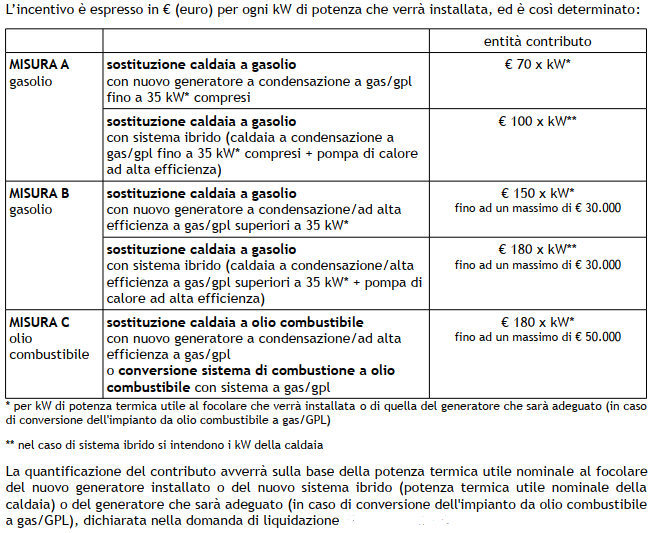 Non sono previsti contributi per la sostituzione di impianti da gas a gas/gpl.